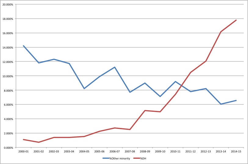 Figure3.1 ← Previous Next → Annual Percentage Share of Total Jobs Advertised in MLA JIL, English Edition